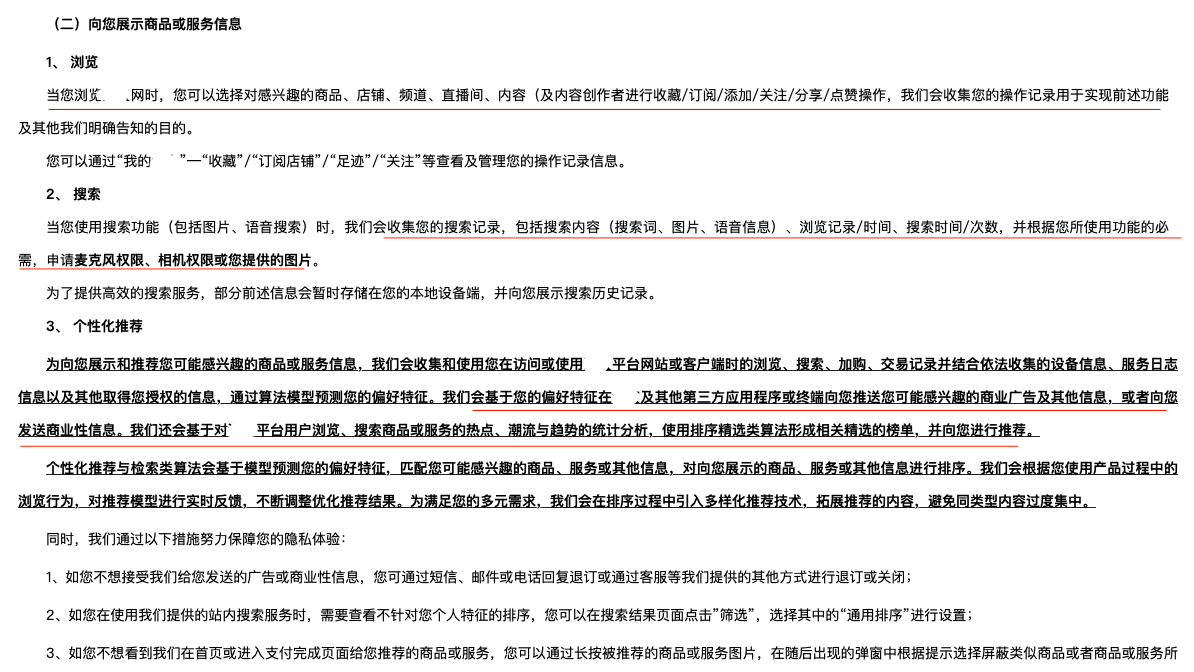 某購物平臺基本功能隱私政策顯示,搜集瀏覽、搜索等相關信息(央廣網(wǎng)發(fā) 某購物網(wǎng)站截圖)