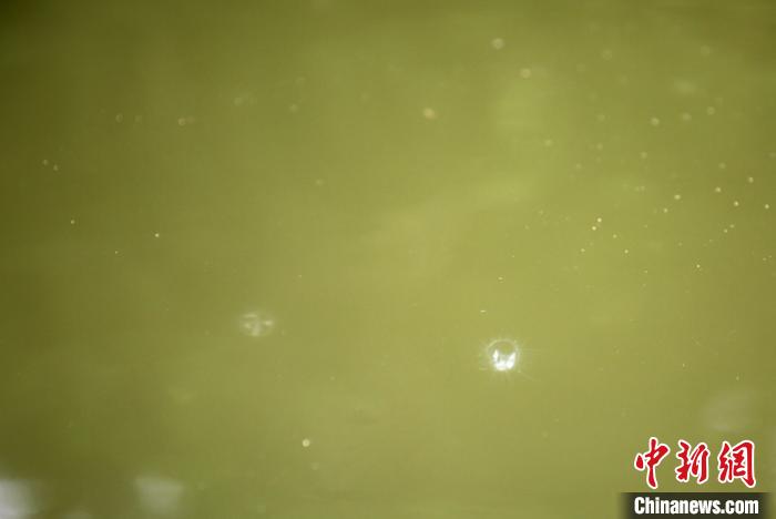 游客正在四川省內(nèi)江市東興區(qū)平坦鎮(zhèn)姜家村蛟龍湖水庫(kù)觀看桃花水母。 蘭自濤 攝