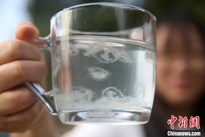 桃花水母游弋在四川省內(nèi)江市東興區(qū)平坦鎮(zhèn)姜家村蛟龍湖水庫(kù)。 蘭自濤 攝