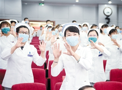 5月11日,北京大學(xué)第三醫(yī)院舉辦紀(jì)念南丁格爾誕辰200周年暨歡迎援鄂護(hù)士返崗活動(dòng)?;顒?dòng)中,對(duì)優(yōu)質(zhì)護(hù)理服務(wù)先進(jìn)集體、十佳護(hù)士等進(jìn)行了表彰。全體醫(yī)護(hù)人員重溫南丁格爾誓言,并用手語(yǔ)舞蹈《聽(tīng)我說(shuō)謝謝你》,表達(dá)對(duì)醫(yī)護(hù)人員崇高的敬意。本報(bào)記者張丹 特約記者仰東萍攝影報(bào)道