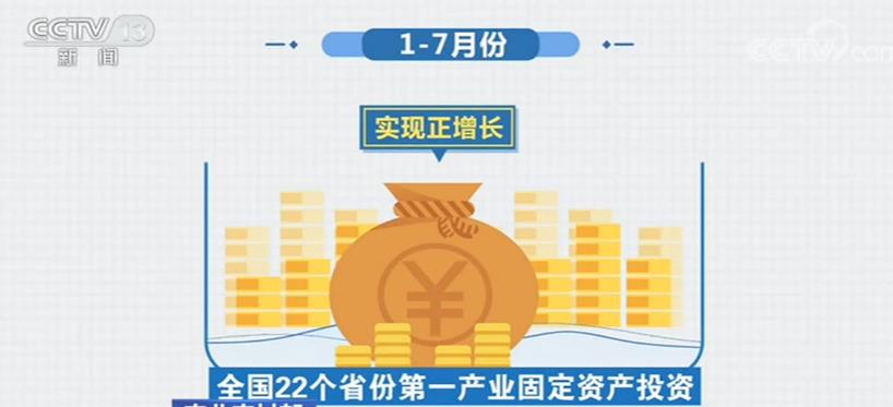 分區(qū)域看,東部、西部、東北地區(qū)投資加速,中部地區(qū)繼續(xù)回升。1—7月份,全國22個省份第一產業(yè)固定資產投資實現正增長。
