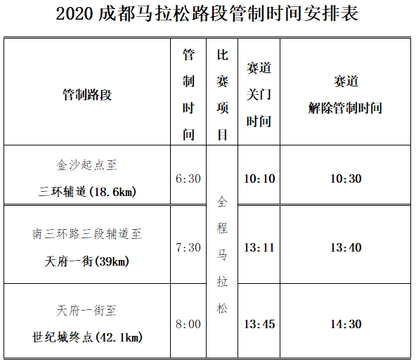 為保障2020成都國際馬拉松賽事的順利進行,組委會將會在以下時段占用部分社會道路進行賽事所需設施的搭建工作: