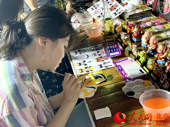 在中關(guān)村國際創(chuàng)新集市上,市民現(xiàn)場體驗非遺項目制作。人民網(wǎng) 孟竹 攝