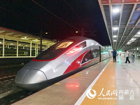 人民網(wǎng)呼和浩特6月19日電 6月18日22時10分,由CR400AF-2017動車組擔當?shù)?D1604/1次列車從呼和浩特東動車所駛出,計劃對張呼高鐵進行兼容性試驗,這也是復興號動車組列車首次“探訪”草原高鐵。