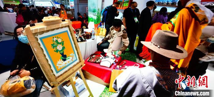 19日,來自高原的特色產(chǎn)品成為展館里一道亮麗的風景線。各地的游客在展區(qū)近距離與非遺傳承人溝通,深入了解西藏文化資源、旅游資源。