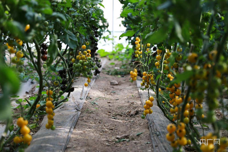 蔬菜大棚里,小西紅柿掛滿枝頭(央廣網(wǎng)記者 唐磊 攝)