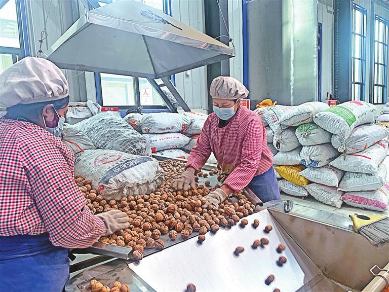 工人們在挑選野生山核桃油的原料。圖由福建省援藏工作隊提供