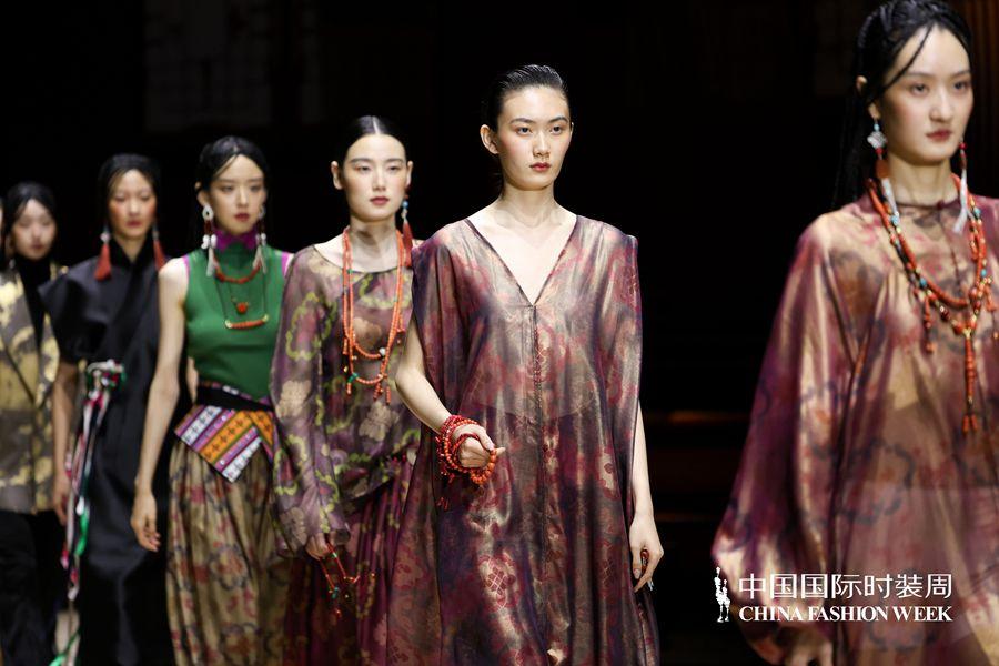 以馬乖在中國國際時裝周的發(fā)布產(chǎn)品為例,連續(xù)多季深根民族文化的傳承與創(chuàng)新,在跟隨株洲援藏工作隊進入扎囊縣后,馬乖開始深入發(fā)掘藏族服飾與時尚消費的融合創(chuàng)新,跟其他設(shè)計師借鑒少數(shù)民族元素做新產(chǎn)品的初衷不同,素白所呈現(xiàn)的新款背后是整個團隊研發(fā)的藏族非遺產(chǎn)品的動態(tài)活化過程,氆氌之鄉(xiāng)的“經(jīng)濟產(chǎn)品”是馬乖展開文化元素呈現(xiàn)后的落點,共建面料研發(fā)中心,將手工藝面料再造作為時尚服飾的亮點,研發(fā)新產(chǎn)品,提質(zhì)文化成果的經(jīng)濟轉(zhuǎn)化。觀察素白發(fā)布的往季產(chǎn)品,不難發(fā)現(xiàn),精粹歷史文化遺產(chǎn)、復(fù)興民族手工藝、打造時尚融合新品是品牌發(fā)展常態(tài),從大力發(fā)展植物染到玫瑰纖維的研發(fā)和使用,馬乖一直以設(shè)計之力、品牌影響在為消費者尋找更適合中國人自己的時尚發(fā)展模型。