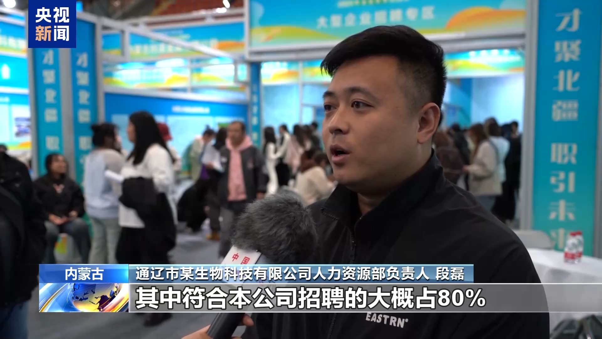 通遼市某生物科技有限公司人力資源部負(fù)責(zé)人段磊:有意向人員大概有60多人,其中符合本公司招聘的人員大概占80%。篩選通過之后到公司面試,在一個(gè)星期內(nèi)我們就完成人員快速到崗。