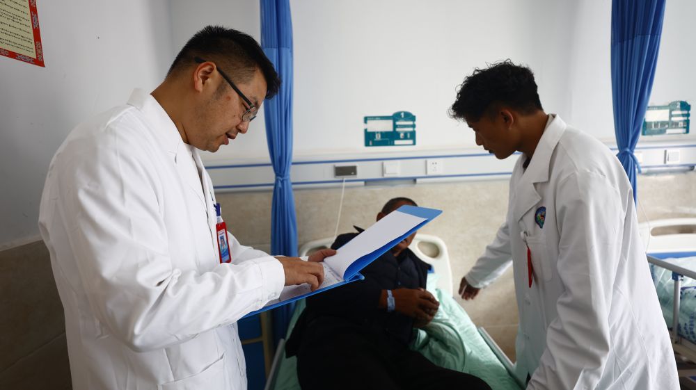 向桂林是一名援藏醫(yī)生,2023年3月,他從重慶市萬州區(qū)來到西藏自治區(qū)昌都市察雅縣開展醫(yī)療援藏工作。在察雅的一年半里,向桂林和隊(duì)員們參加了一百多次義診和下鄉(xiāng)指導(dǎo),累計(jì)接診門診患者1000余人次、救治住院患者400余人次,開展手術(shù)35臺(tái),申報(bào)新技術(shù)10項(xiàng)。今年國慶,向桂林選擇繼續(xù)留守工作崗位。“只能在視頻通話里和家人團(tuán)聚了。但這是我們的責(zé)任更是一種榮譽(yù)?!毕蚬鹆终f。
