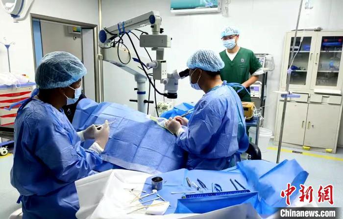 圖為援藏眼科專家張升慶和普蘭縣人民醫(yī)院醫(yī)護人員進行白內(nèi)障手術(shù)。尼瑪次仁 供圖