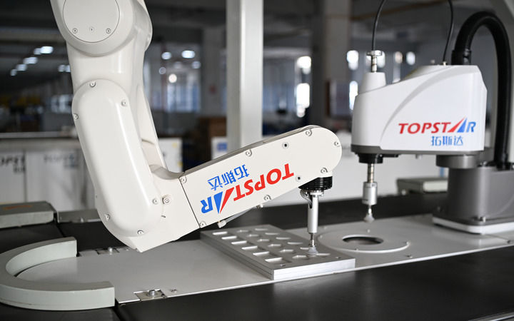 這是2025年3月25日在位于東莞的廣東拓斯達大嶺山生產(chǎn)基地拍攝的工業(yè)機器人。新華社記者 鄧華 攝