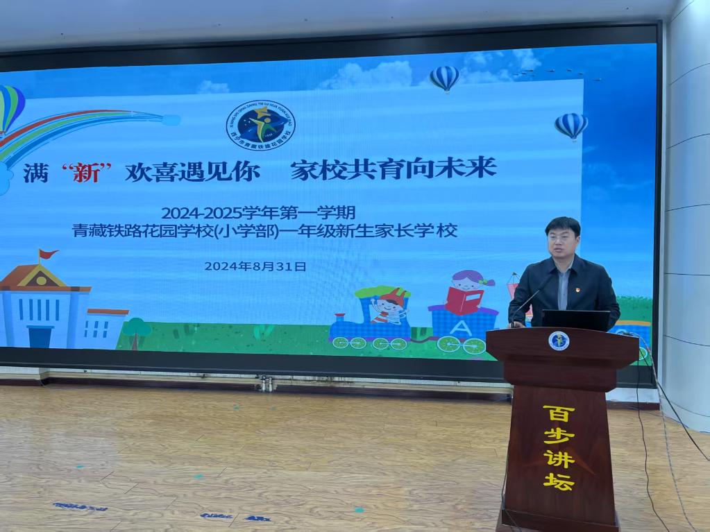 江蘇援青干部、青藏鐵路花園學(xué)校副校長(zhǎng)許健在學(xué)校召開(kāi)家長(zhǎng)會(huì)。(受訪(fǎng)者供圖)