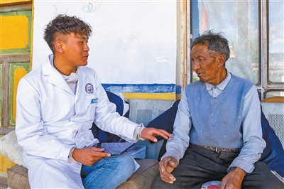 隨后,他用平板電腦詳細(xì)記錄檢測(cè)的各項(xiàng)情況,形成了一份電子健康檔案?!按遽t(yī)的醫(yī)療能力有限,我們更多是跟蹤檢查,建立患者的健康檔案,摸清健康底數(shù),讓上級(jí)醫(yī)療機(jī)構(gòu)完整了解信息。”索朗丹增介紹。