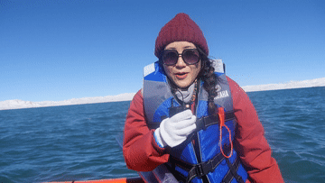 大家好,我是新華社記者董琳娜,我現(xiàn)在是在青藏高原格拉丹東的雀莫錯上。這里的海拔是5000米左右,現(xiàn)在戶外的溫度是零下10攝氏度左右??蒲腥藛T是要采雀莫錯的水樣。我們在12點之前要把水樣采完,否則風(fēng)浪會非常大,給我們的工作帶來非常大的困難。