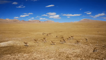 羌塘草原,平均海拔超過4700米。由于自然條件惡劣,這里被稱為“人類生命的禁區(qū)”,但卻是野生動物的樂園。記者穿過羌塘草原,路遇一群藏羚羊。新華社記者 董琳娜 攝