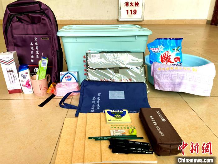 資料圖為京藏宏志班學生發(fā)放的學習、生活用品。 北京援藏供圖