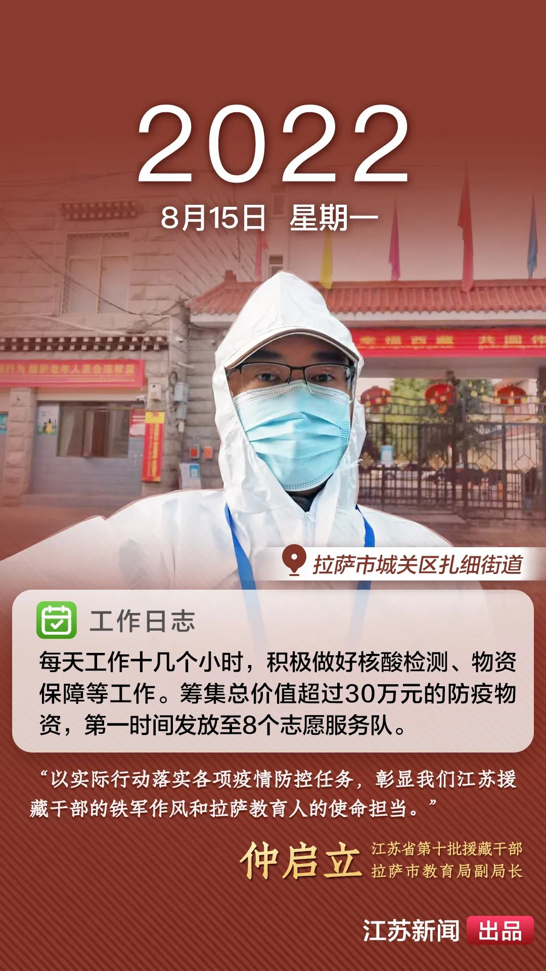 2022年8月,一場(chǎng)突如其來(lái)的新冠肺炎疫情襲擊拉薩。江蘇援藏前方指揮部樹立高度的政治意識(shí),堅(jiān)決貫徹江蘇省委、省政府主要領(lǐng)導(dǎo)批示精神和自治區(qū)、拉薩市部署要求,全力以赴做好疫情防控工作。第十批援藏干部人才克服初到高原的身體反應(yīng),服從服務(wù)大局、勇于擔(dān)當(dāng)作為,迅速投身疫情防控工作一線,以實(shí)際行動(dòng)展現(xiàn)江蘇援藏的鐵軍作風(fēng)。近期,我們將陸續(xù)推出江蘇援藏干部人才抗疫身影,敬請(qǐng)關(guān)注。