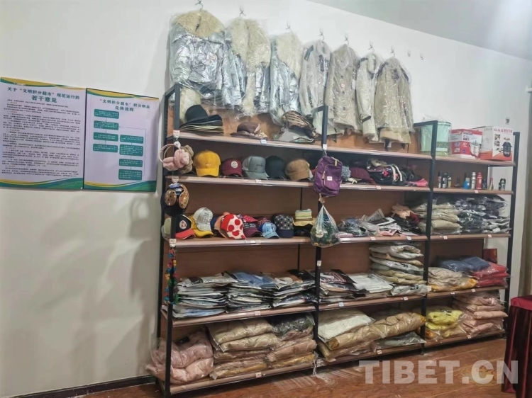 “誠信色尼文明積分超市”收到的部分捐贈衣物