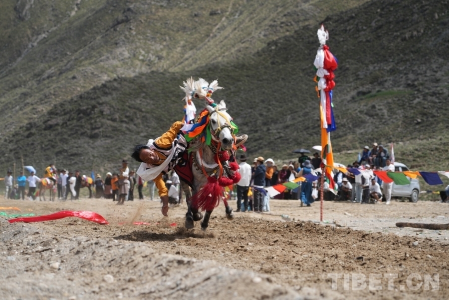 圖為拉薩市曲水縣曲水鎮(zhèn)曲甫村舉辦的“熱烈慶祝西藏自治區(qū)成立60周年暨賽馬節(jié)活動”現(xiàn)場,此活動也是望果節(jié)活動的一部分 攝影:王茜