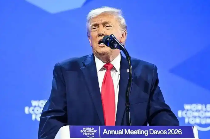圖為美國總統(tǒng)特朗普在世界經(jīng)濟論壇年會上發(fā)表演講 圖源:央視新聞
