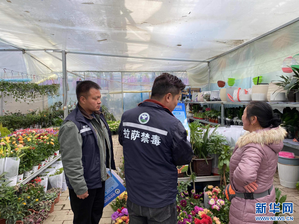 拉薩禁毒支隊民警對種子市場進行突擊檢查。(受訪者提供)