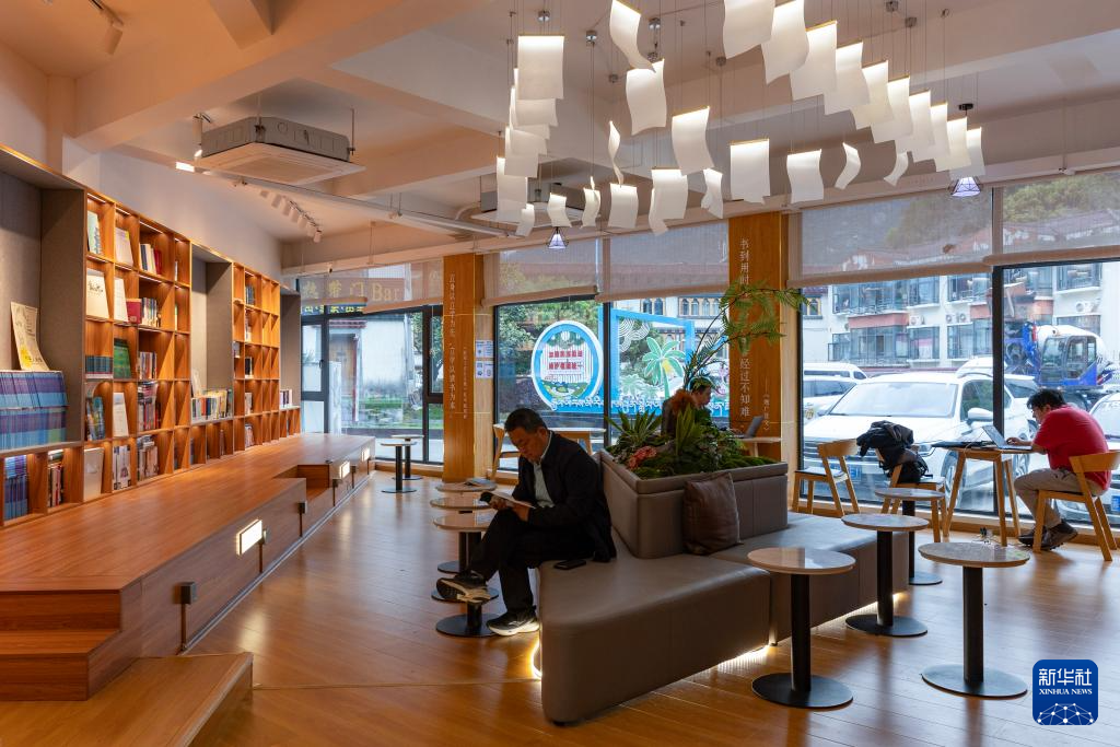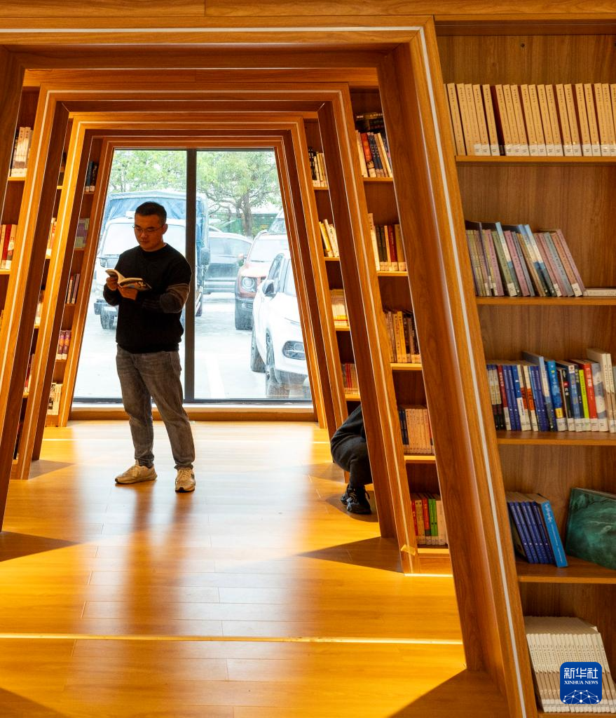 4月22日,當(dāng)?shù)厝罕娫谀摗吧徎〞?shū)屋”閱讀。新華社記者 姜帆 攝