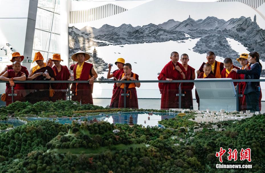 圖為5月17日,西藏少年活佛參學團參觀杭州西湖博物館。