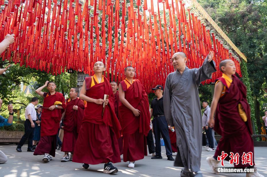 圖為5月18日,西藏少年活佛參學團在杭州靈隱寺禮佛。