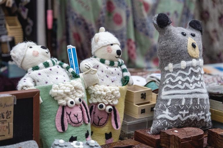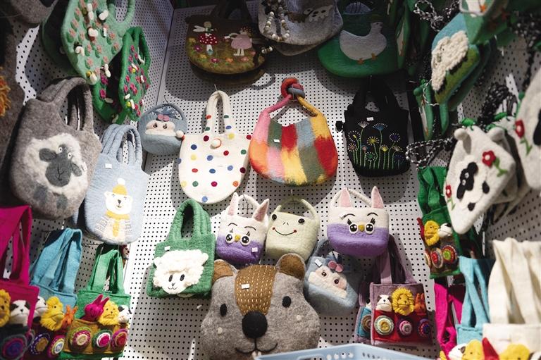 阿佳們親手鉤織的毛線茶杯套、毛線桌墊,既實(shí)用又色彩鮮明,墻上掛滿的手工編織牛毛包讓人“糾結(jié)癥”都犯了!和這座商城的建筑一樣,這里出售的美物將藏式美學(xué)展現(xiàn)得淋漓盡致。此外,這里還能淘到毛氈玩偶、毛氈風(fēng)鈴、毛茸茸的藏戲面具掛件等一些能給生活增添樂趣的“小廢物”。