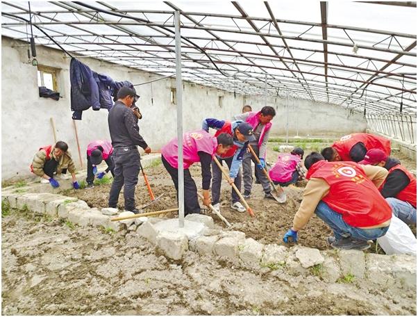 圖為薩爾鄉(xiāng)開展“志愿紅”播種“愛心菜”活動。