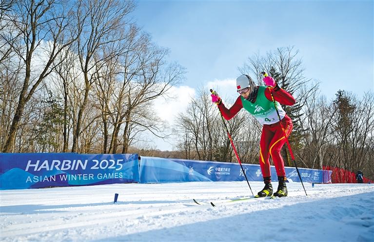 越野滑雪,是一項耐力和速度并重的運動,以滑雪板和滑雪杖為工具,滑行于山丘雪原的運動項目,自1986年首屆亞冬會即被列為正式比賽項目,其賽道通常包括上坡、下坡和平地,分別占賽道總長1/3,選手需要使用傳統(tǒng)式或自由式滑雪技巧進行比賽。