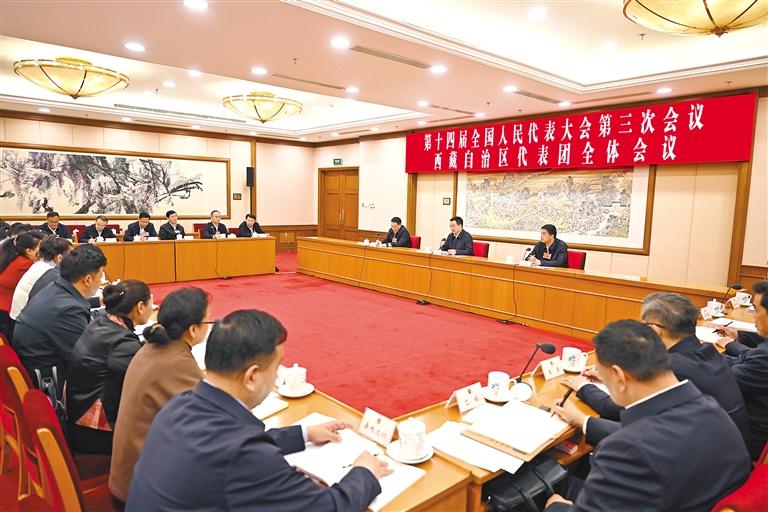 3月11日,西藏代表團舉行全體會議,審議關(guān)于全國人大常委會工作報告、最高人民法院工作報告、最高人民檢察院工作報告的決議草案。