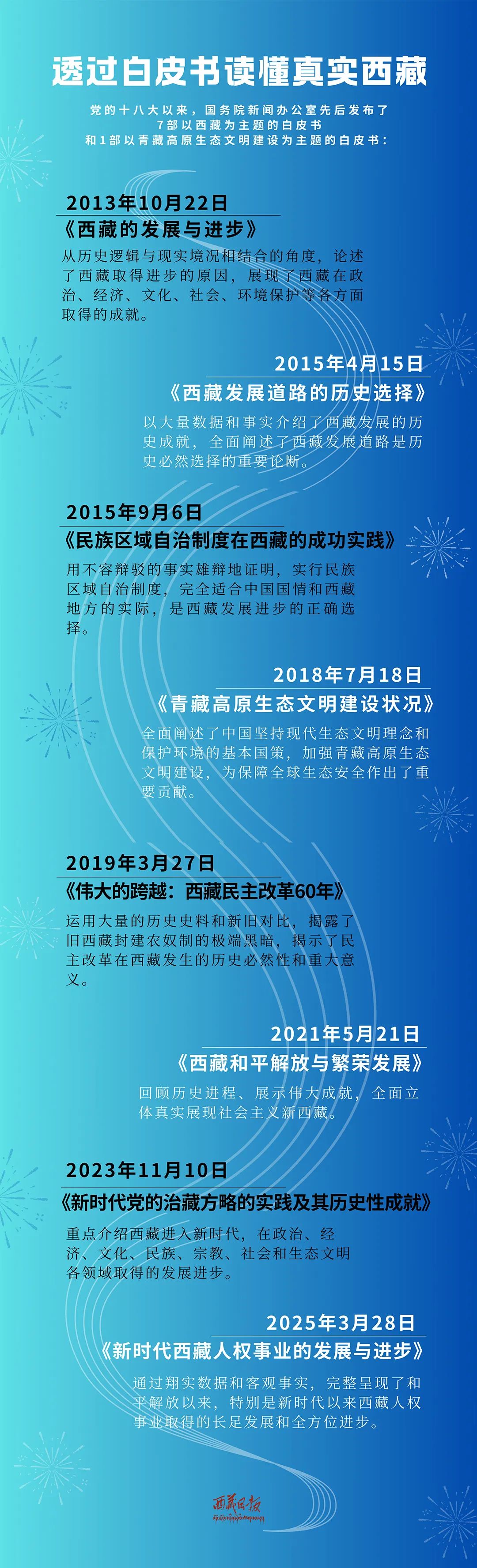 一部部白皮書,全面、立體、真實地展現(xiàn)社會主義新西藏,讓全世界都看到雪域高原的滄桑巨變和新時代的日新月異。