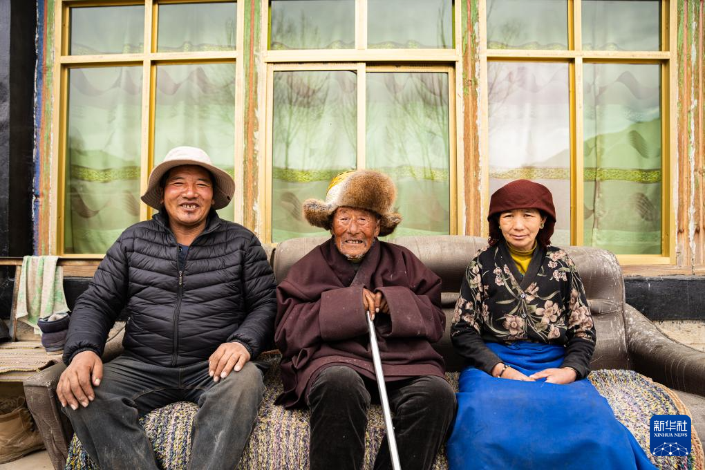 索扎老人和家人合影(3月20日攝)。新華社記者 丁增尼達 攝