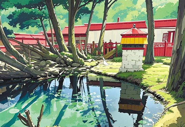 三個(gè)放學(xué)歸來的孩子蹲在石板邊,用泉水沖洗沾滿泥土的手,水珠順著手指滴落時(shí),忽然有斑頭雁群掠過泉面上空。他們屏息凝望的瞬間,宮崎駿動畫中常見的“萬物有”氣息,正從濕地里蒸騰的水霧中悄然漫出。