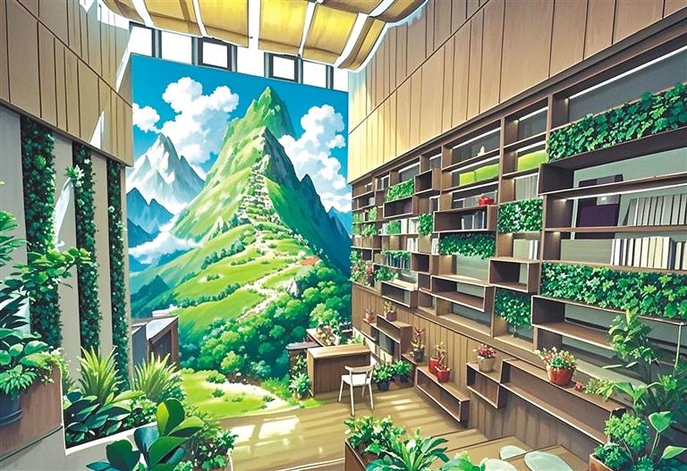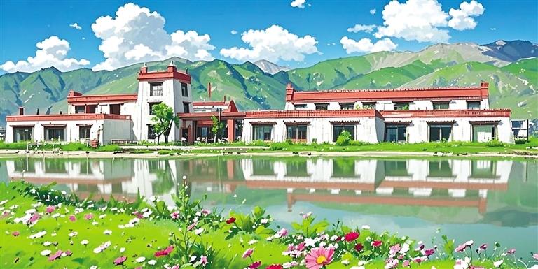 “我就是想以動畫風(fēng)格給大家展示不一樣的堆龍?!钡┰隼氛f。只見她又將照片導(dǎo)入AI圖片生成軟件內(nèi),AI自動識別圖像元素——經(jīng)幡的布料特性、水流的物理參數(shù)、建筑材質(zhì)的反光數(shù)據(jù)。輕點(diǎn)“生成”按鈕,1分23秒后,一張動畫風(fēng)格的Shadada CoffeeX新型公共文化空間的圖片便呈現(xiàn)在眼前。重點(diǎn)不是技術(shù),是審美把關(guān),旦增拉姆指著屏幕上的失敗案例:“AI把青稞田處理成糖果色卡通,把圖書館渲染成賽博朋克風(fēng)格。我每天要調(diào)整無數(shù)次參數(shù),就像教AI理解什么是藏地美學(xué)?!彼米瞵F(xiàn)代化的數(shù)字工具,“描繪”著堆龍德慶區(qū)新的光影詩篇。