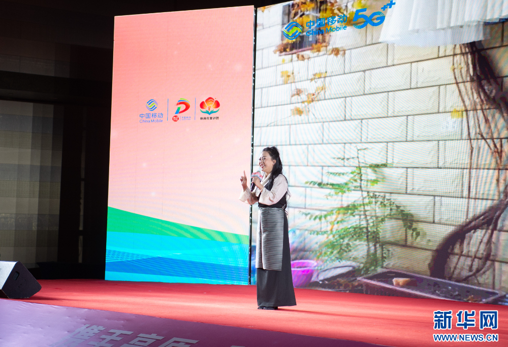 4月25日,中國移動西藏公司宣講員卓嘎拉姆在講述《踐行以人民為中心理念,共筑西藏移動發(fā)展新篇章》。新華網(wǎng) 旦增努布 攝