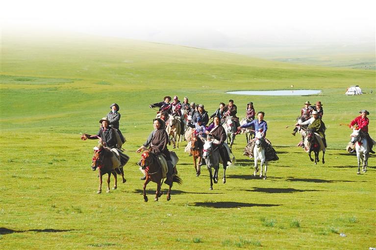 藏北牧民在唐古拉山下的草原上縱馬馳騁。巴沃益西 攝