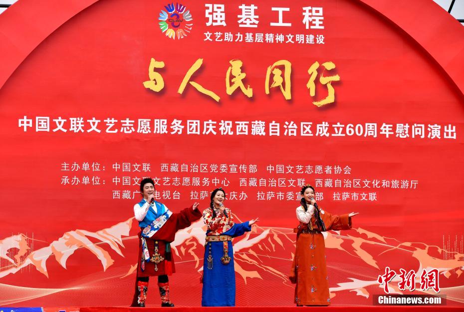 5月25日,由中國文聯(lián)、西藏自治區(qū)黨委宣傳部、中國文藝志愿者協(xié)會(huì)主辦的“與人民同行”中國文聯(lián)文藝志愿服務(wù)團(tuán)慶祝西藏自治區(qū)成立60周年慰問演出在位于拉薩的西藏會(huì)展中心廣場舉行。藝術(shù)家們?yōu)楝F(xiàn)場觀眾帶來歌曲、舞蹈、相聲、朗誦等節(jié)目,把優(yōu)質(zhì)文化服務(wù)送到基層一線。圖為歌曲《珠穆朗瑪》演出現(xiàn)場。