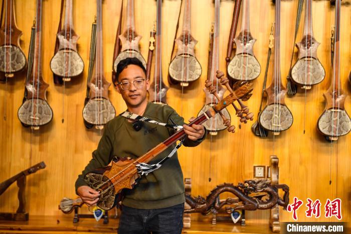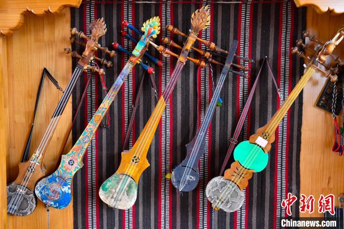 6月14日,記者走進(jìn)西藏自治區(qū)日喀則市拉孜縣熱薩鄉(xiāng),探訪中國(guó)國(guó)家級(jí)非物質(zhì)文化遺產(chǎn)“扎念琴制作技藝”的具體制作過(guò)程。扎念琴,又名六弦琴,是西藏傳統(tǒng)歌舞“堆諧”中最常用的彈撥樂(lè)器。扎念,藏語(yǔ)意為“悅耳動(dòng)聽之聲”。在西藏,扎念琴深受廣大群眾喜愛。2014年,“扎念琴制作技藝”入選第四批中國(guó)國(guó)家級(jí)非物質(zhì)文化遺產(chǎn)代表性項(xiàng)目名錄。據(jù)了解,扎念琴制作共有5道基本程序:第一步,將整根木材掏空,做成共鳴箱;第二步,制作中間空心的琴桿,裝上名為“卡杺”的面板;第三步,雕刻“馬頭”或“龍頭”形狀的琴頭,安裝在琴桿頂部;第四步,制作附在琴頭、呈半圓形、向后彎曲且中間開有弦槽的扎念弦軸。最后一步,挑選羊腸、牛筋、絲線等不同材料來(lái)制作琴弦。扎念琴制作技藝的特別之處在于,為了琴身的美觀,初制后還要通過(guò)雕刻馬頭、龍頭、火焰等形狀作為裝飾,讓扎念琴更具特色。圖為制作完成的扎念琴。貢確 攝