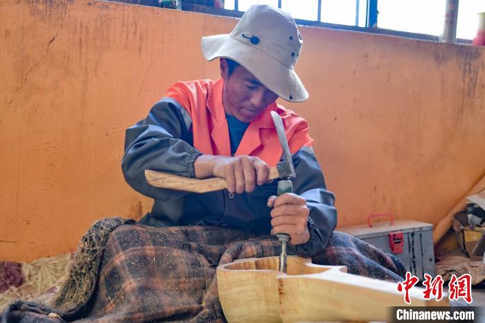 圖為拉孜縣熱薩村村民普瓊次仁正在進(jìn)行雕刻。貢確 攝
