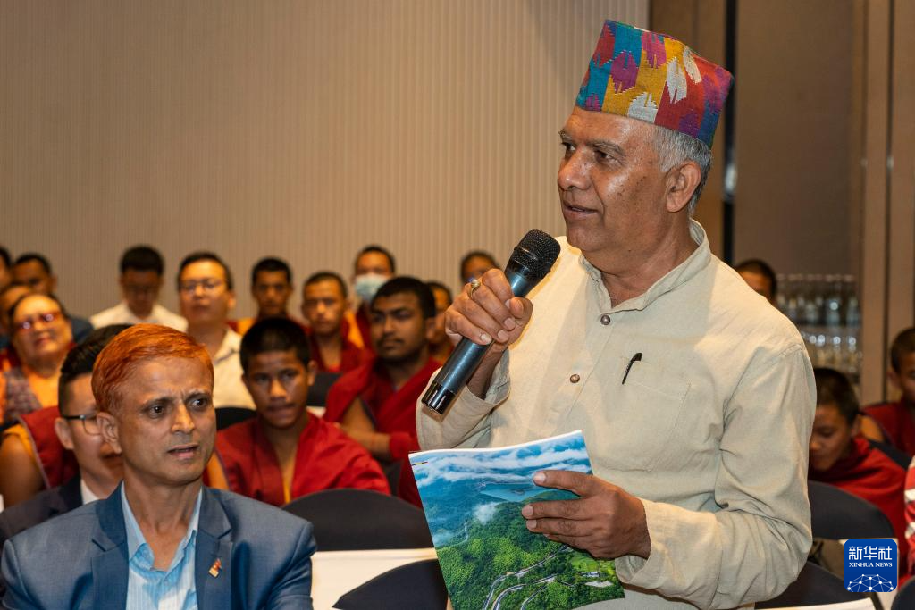 6月24日,一名與會(huì)者在尼泊爾加德滿都舉辦的交流會(huì)上提問。新華社發(fā)(哈里·馬哈爾詹攝)
