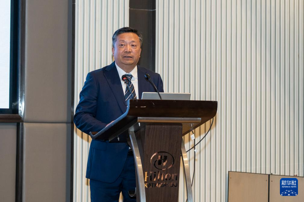 6月24日,一名中國藏學(xué)家在尼泊爾加德滿都舉辦的交流會(huì)上發(fā)言。新華社發(fā)(哈里·馬哈爾詹攝)