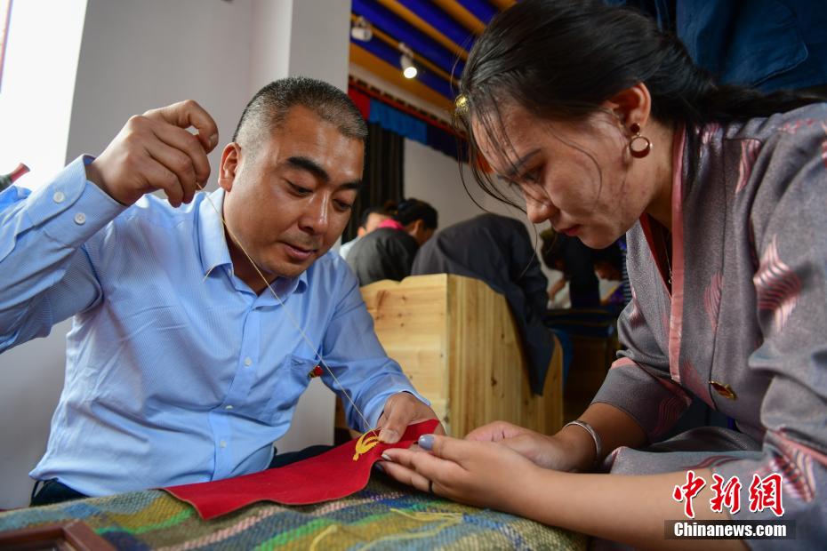 6月29日上午,西藏自治區(qū)民辦職業(yè)技能培訓學校行業(yè)黨委在拉薩市城關區(qū)開展慶祝建黨100周年活動,現(xiàn)場黨員們通過開展重溫入黨誓詞、縫制黨旗、走訪慰問等紀念活動,回顧黨的百年光輝歷程。圖為縫制黨旗現(xiàn)場。貢嘎來松 攝