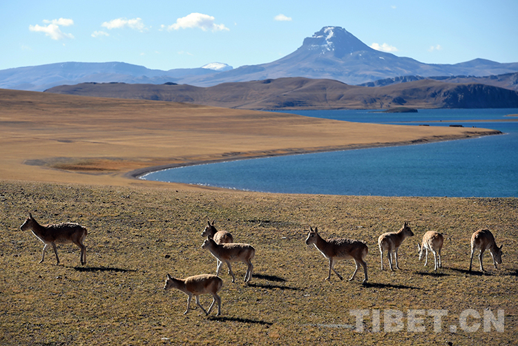 湖濱河畔,地勢平坦開闊,水草豐盛甜美,是藏羚羊頻繁活動的場所。藏羚羊是一種善跑的動物,跑起來輕快灑脫、疾如長風(fēng),時(shí)速可達(dá)80公里。