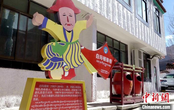 圖為山南市乃東區(qū)扎西曲登社區(qū)充滿藏戲藝術(shù)魅力的標(biāo)語(yǔ)。貢桑拉姆 攝