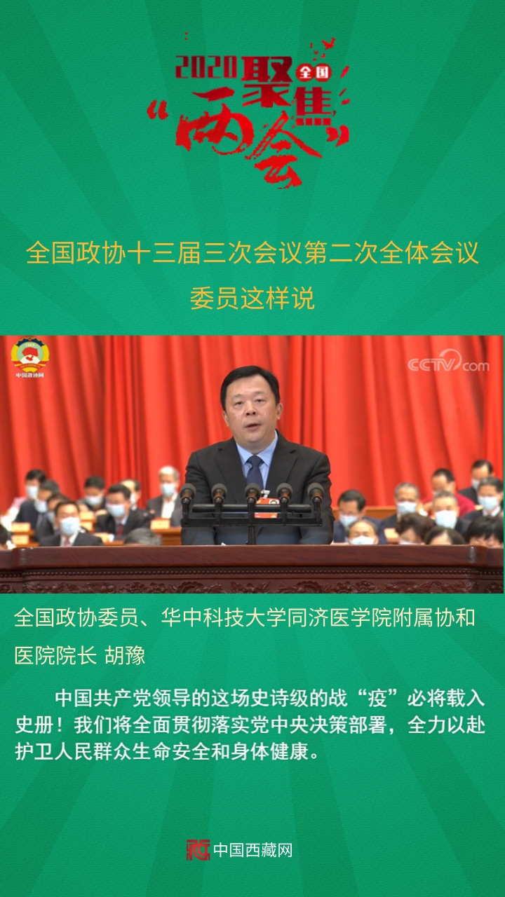 全國政協(xié)委員、華中科技大學同濟醫(yī)學院附屬協(xié)和醫(yī)院院長胡豫發(fā)言說,中國共產(chǎn)黨領導的這場史詩級的戰(zhàn)“疫”必將載入史冊!我們將全面貫徹落實黨中央決策部署,全力以赴護衛(wèi)人民群眾生命安全和身體健康。