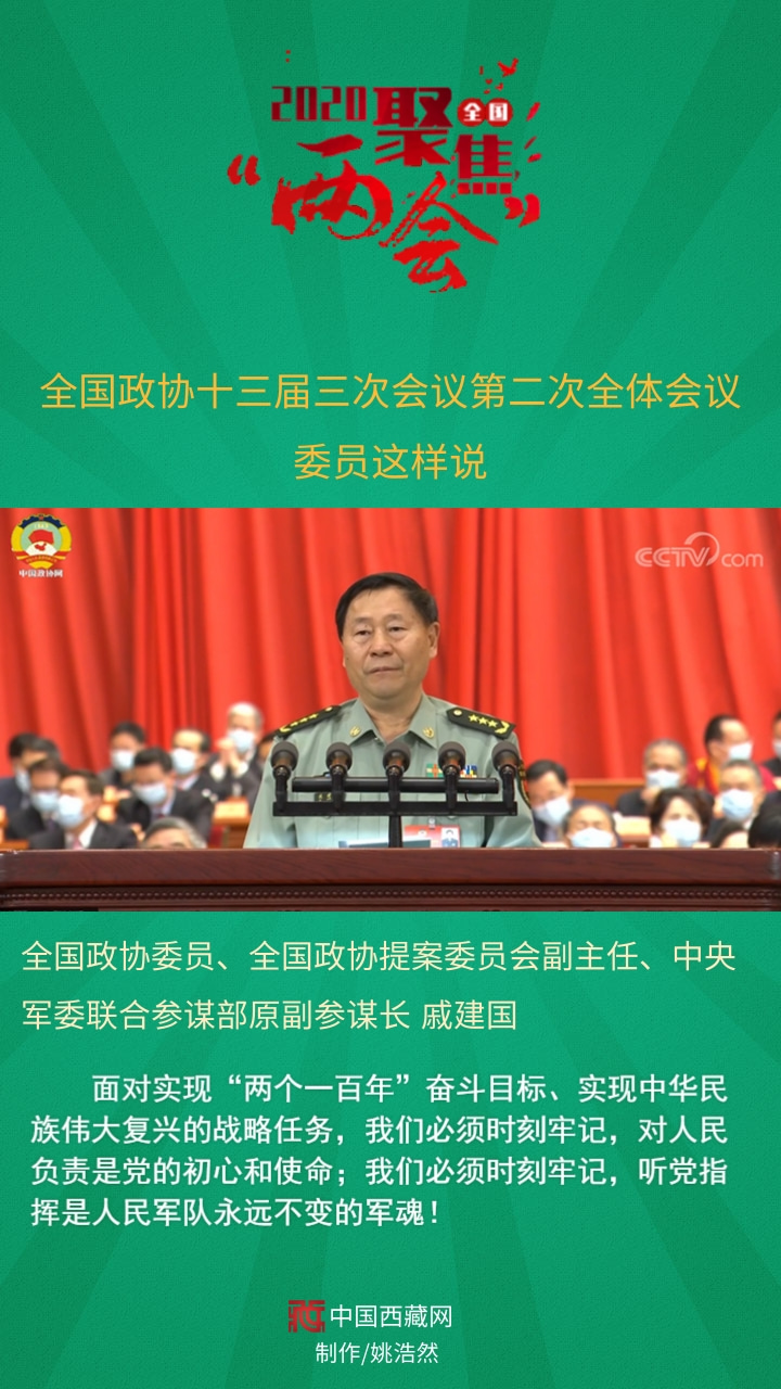 全國政協(xié)委員、全國政協(xié)提案委員會副主任、中央軍委聯(lián)合參謀部原副參謀長戚建國發(fā)言說,面對實現(xiàn)“兩個一百年”奮斗目標、實現(xiàn)中華民族偉大復興的戰(zhàn)略任務,我們必須時刻牢記,對人民負責是黨的初心和使命;我們必須時刻牢記,聽黨指揮是人民軍隊永遠不變的軍魂!