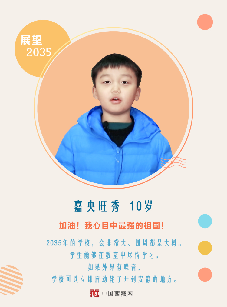 黨的十九屆五中全會(huì)提出,到2035年基本實(shí)現(xiàn)社會(huì)主義現(xiàn)代化。你期待2035年的到來(lái)嗎?在你心中,2035年的中國(guó)會(huì)是什么樣?未來(lái)15年,你有哪些大規(guī)劃、小目標(biāo)?中國(guó)西藏網(wǎng)策劃推出系列海報(bào),本期帶你走進(jìn)小朋友們關(guān)于教育“未來(lái)力”的展望與暢想?!?/p>